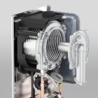 - Scambiatore secondario in acciaio inox a 12 piastre a “lunghezza termica”, ottimizzata per la condensazione,
